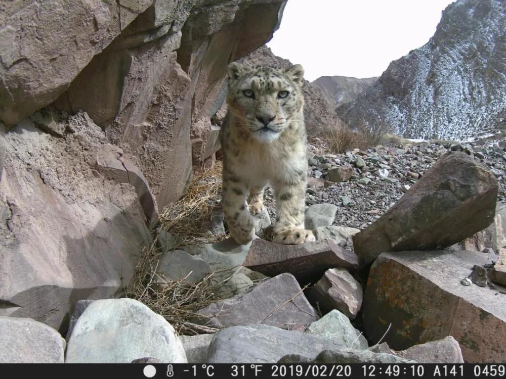 ↑2019年2月20日,在祁連山國家公園青海片區(qū),紅外相機(jī)拍攝到的雪豹照片。
