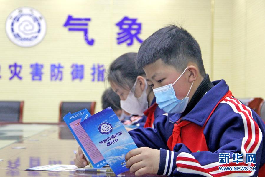 3月22日,河北省柏鄉(xiāng)縣南關(guān)小學(xué)的學(xué)生在學(xué)習(xí)氣象知識。新華社發(fā)(李雪其 攝)
