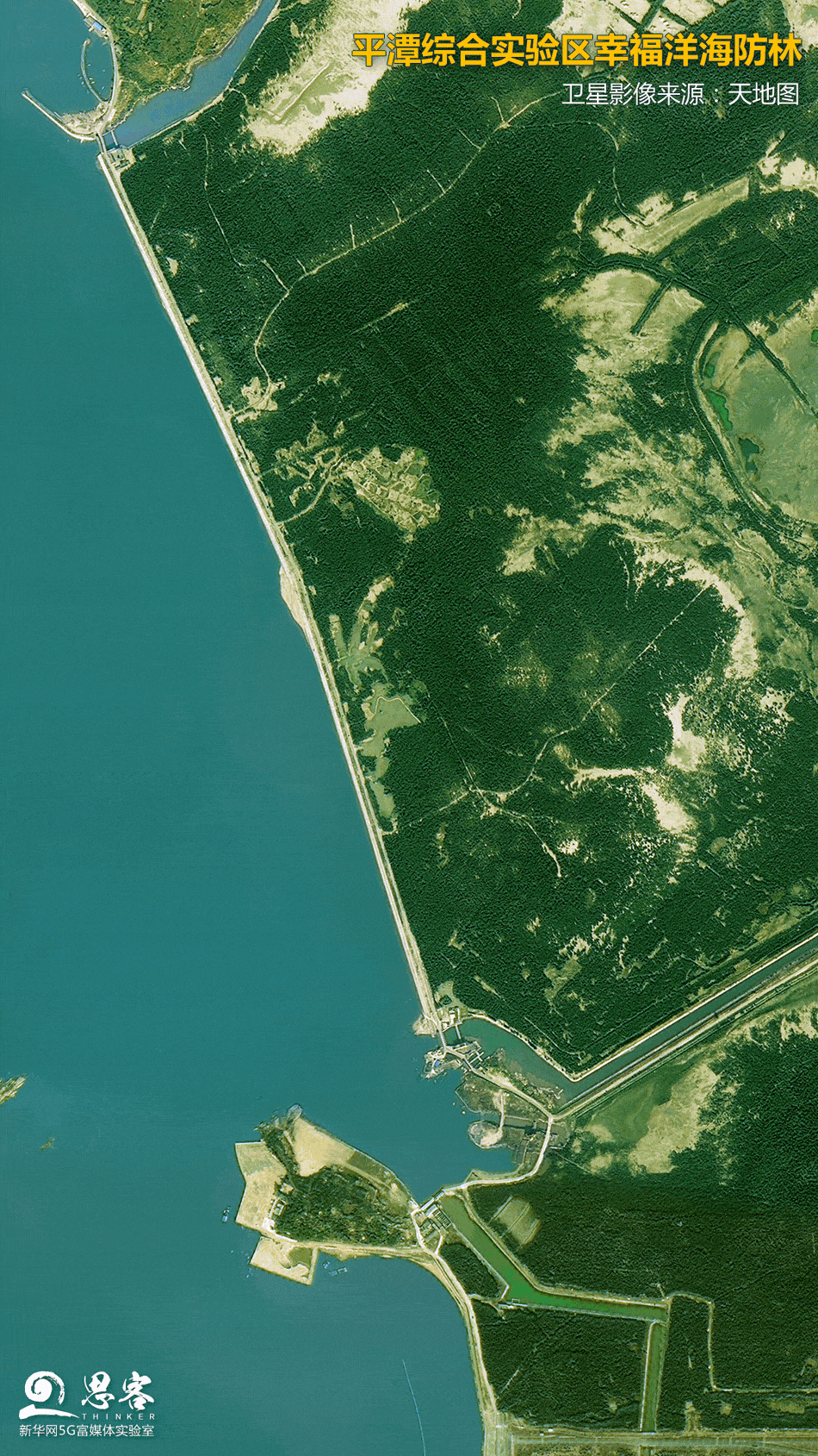 ▲平潭綜合實(shí)驗(yàn)區(qū)幸福洋海防林。衛(wèi)星影像來源:天地圖