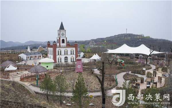 站在南溝村生態(tài)園最高處的觀景臺俯瞰景區(qū),紅色小樓錯落有序、旁邊水庫綠水盈盈、遠處山峰層層疊疊、成片的蘋果園劃出整齊的曲線,五顏六色的游樂設施裝點著黃土高原,讓人驚嘆山溝溝里竟然還有這樣養(yǎng)眼的好去處。