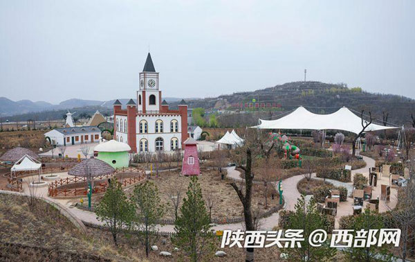 站在南溝村生態(tài)園最高處的觀(guān)景臺(tái)俯瞰景區(qū),紅色小樓錯(cuò)落有序、旁邊水庫(kù)綠水盈盈、遠(yuǎn)處山峰層層疊疊、成片的蘋(píng)果園劃出整齊的曲線(xiàn),五顏六色的游樂(lè)設(shè)施裝點(diǎn)著黃土高原,讓人驚嘆山溝溝里竟然還有這樣養(yǎng)眼的好去處。