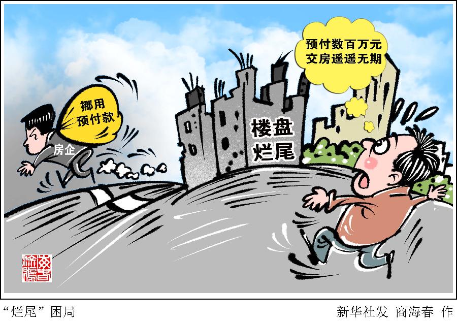 上海浦東御中環(huán)二期項(xiàng)目爛尾并非偶發(fā)事件。近年來(lái),各地嚴(yán)控房地產(chǎn)融資。于是,一些開(kāi)發(fā)商挪用購(gòu)房預(yù)付款“拆東墻補(bǔ)西墻”,高負(fù)債、高杠桿拿地賣房。當(dāng)“十口鍋五個(gè)蓋”的游戲難以為繼,購(gòu)房者就不得不為開(kāi)發(fā)商的挪用行為“埋單”。樓盤(pán)爛尾、交付遙遙無(wú)期、維權(quán)難等現(xiàn)象在多地頻發(fā)。