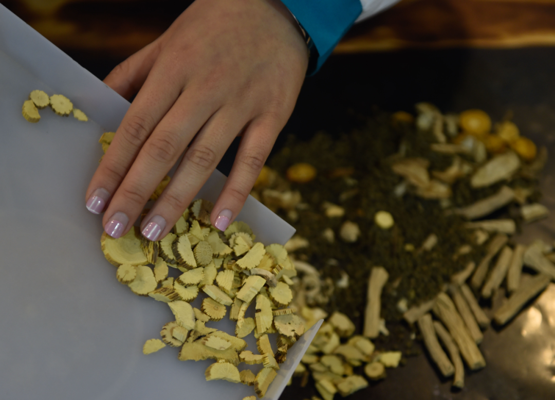 ▲圖為中醫(yī)藥專(zhuān)業(yè)的學(xué)生在調(diào)配中藥。新華社照片
