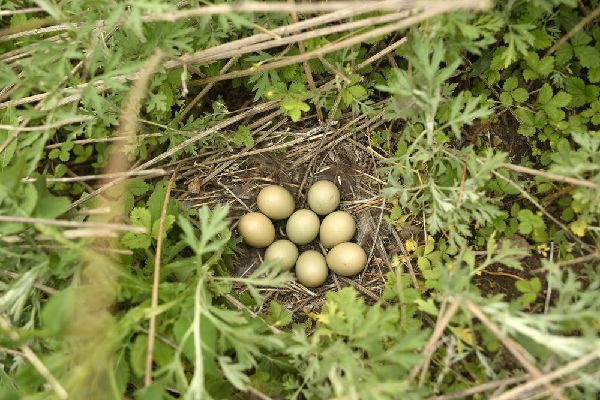 寧夏固原市涇源縣大灣鄉(xiāng)移民曾經(jīng)生活的遺跡下,一窩鳥蛋在草叢中(6月4日攝)。