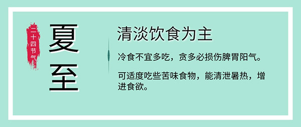 很多人有苦夏的問題,這是源于天氣炎熱,出汗較多,人體消化功能相對較弱。此時飲食宜清淡為主,多食苦味食物,如苦瓜、馬齒莧等,以祛暑清熱;同時,可多吃些生津之品,如西瓜、楊梅等,補充水分,祛除暑濕之邪;切忌過食辛辣熱性食物,以免助熱生火;食用冷食瓜果應(yīng)當(dāng)適可而止,不可過食,以免損傷脾胃。