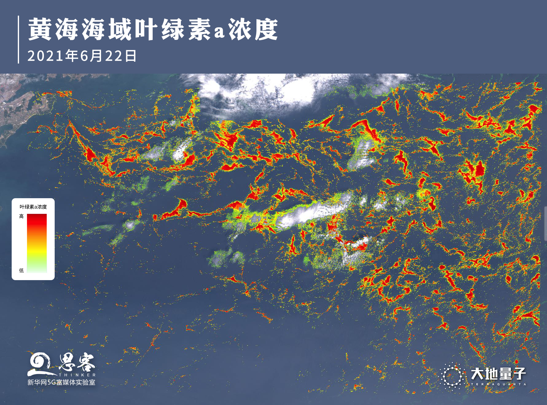 同時,滸苔具有很強的無機碳利用能力,并且對海水pH值有很高的“忍耐程度”,可以在更高pH值的海水中繁殖,這也是本次青島近海出現(xiàn)大量滸苔的原因之一。通過6月22日的衛(wèi)星影像遙感分析,可以看到黃海海域葉綠素a濃度較高,滸苔生長比較旺盛。