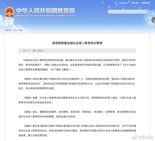 記者19日從教育部了解到,為推動社會成人教育培訓(xùn)規(guī)范有序發(fā)展,解決部分社會成人教育培訓(xùn)機構(gòu)存在名稱使用不規(guī)范、虛假不實招生宣傳、條件和質(zhì)量低下、損害人民群眾合法利益、擾亂教育培訓(xùn)市場秩序等問題,教育部近日印發(fā)《關(guān)于加強社會成人教育培訓(xùn)管理的通知》。通知強調(diào),要圍繞名稱使用、招生管理、培訓(xùn)內(nèi)容、師資團(tuán)隊、培訓(xùn)模式、經(jīng)費管理、安全管理等方面加強對社會成人教育培訓(xùn)機構(gòu)的管理。通知要求各地教育行政部門積極協(xié)調(diào)和配合有關(guān)部門開展社會成人教育培訓(xùn)專項治理行動。(記者胡浩)