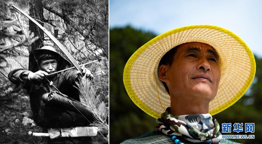 拼版照片: 左圖是20世紀(jì)50年代瓊林村的獵手達(dá)前(資料照片);右圖是2021年6月19日拍攝的林芝米林縣瓊林村村民達(dá)吉,結(jié)束打獵生涯,成為養(yǎng)殖戶和護(hù)林員(新華社記者晉美多吉攝)。新華社發(fā)