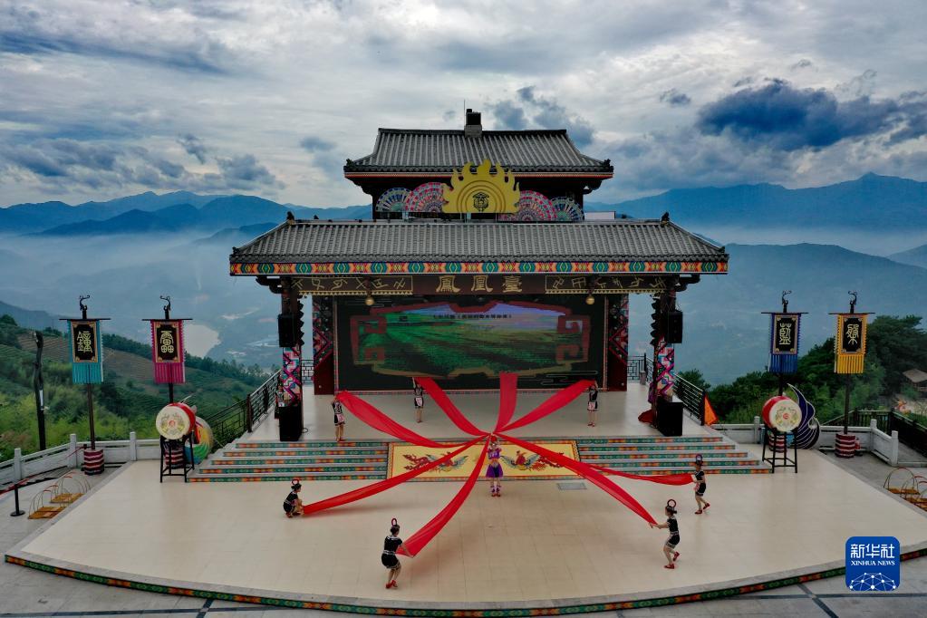 村民在福建省漳州市華安縣新圩鎮(zhèn)官畬村的鳳凰臺上表演畬族傳統(tǒng)舞蹈(資料照片)。新華社發(fā)