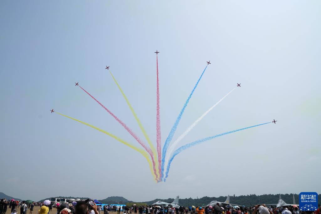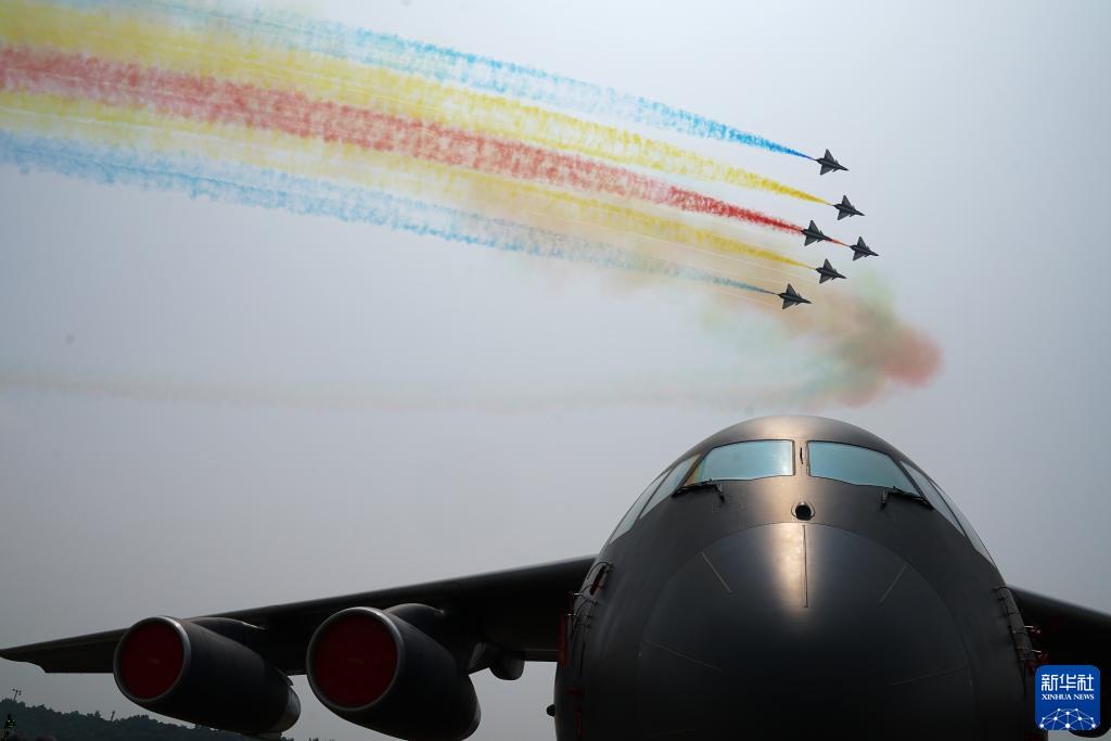 10月1日,中國空軍八一飛行表演隊(duì)在第十三屆中國國際航空航天博覽會(huì)上進(jìn)行飛行表演。新華社發(fā)(余紅春 攝)