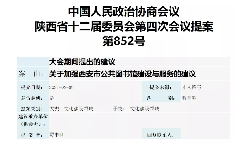 今年省兩會上,省政協委員、西安交通大學圖書館館長賈申利提交了《關于加強西安市公共圖書館建設與服務的建議》的提案。賈申利建議,應加大資金投入,逐步增加區(qū)縣公共圖書館的數量,實現全市范圍內各區(qū)縣公共圖書館全覆蓋。同時,適當延長各級公共圖書館的開放時間,且做到開放時間與一般工作時間適當錯開,確保群眾閑暇時段有序開放,尤其是學生寒暑假、節(jié)假日期間適當延長開放時間。