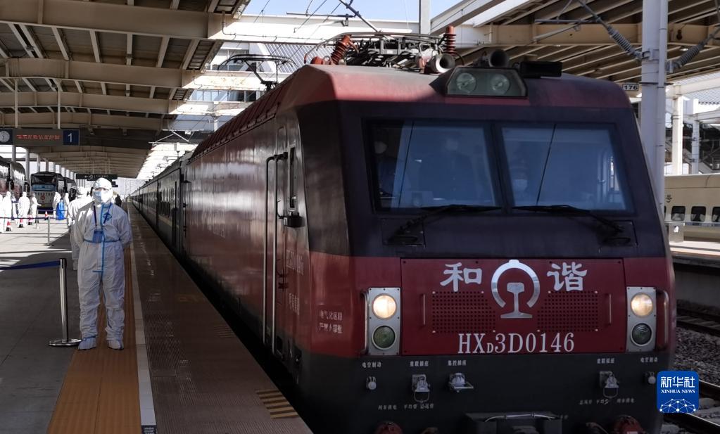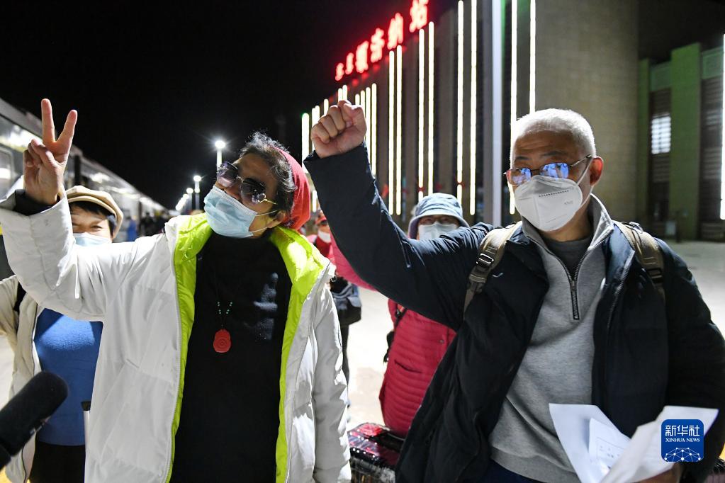 10月30日,載有額濟(jì)納旗滯留游客的列車,抵達(dá)鄂爾多斯火車站。新華社發(fā)