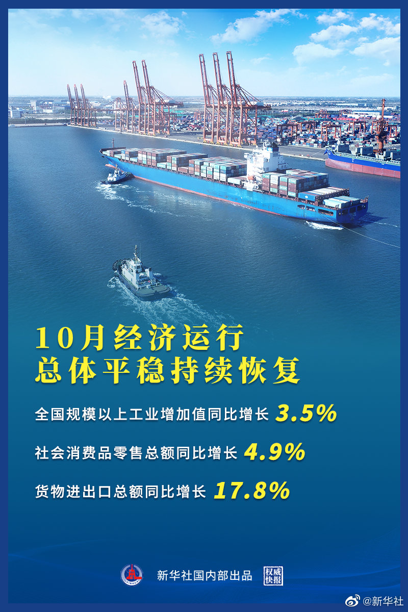 “總的來看,10月份經(jīng)濟運行總體平穩(wěn)持續(xù)恢復(fù),發(fā)展韌性繼續(xù)顯現(xiàn)。但也要看到,當(dāng)前國際環(huán)境依然復(fù)雜嚴(yán)峻,不穩(wěn)定不確定因素仍然較多,國內(nèi)發(fā)展中階段性結(jié)構(gòu)性矛盾猶存,保持經(jīng)濟穩(wěn)定恢復(fù)仍需加力。”國家統(tǒng)計局新聞發(fā)言人、國民經(jīng)濟綜合統(tǒng)計司司長付凌暉說。