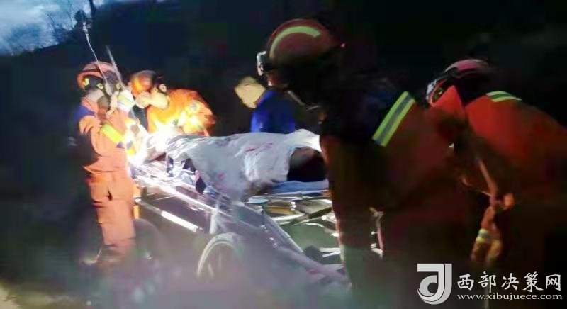 凌晨六點(diǎn),山里依舊是漆黑一片,山風(fēng)冷颼颼,醫(yī)護(hù)人員和消防救援人員輪換著抬著擔(dān)架在高低不平、狹窄崎嶇的山路上深一腳淺一腳,舉步維艱地前行,累的氣喘吁吁。雜草掩蓋了道路,讓人分不清是路還是溝,原本20分鐘的路程,一行人卻走了1小時。行進(jìn)的途中,患者的每一聲呻吟都牽動著大家的心。早上7點(diǎn)20分,在大家的共同努力下,安全將患者送到120急救車上。