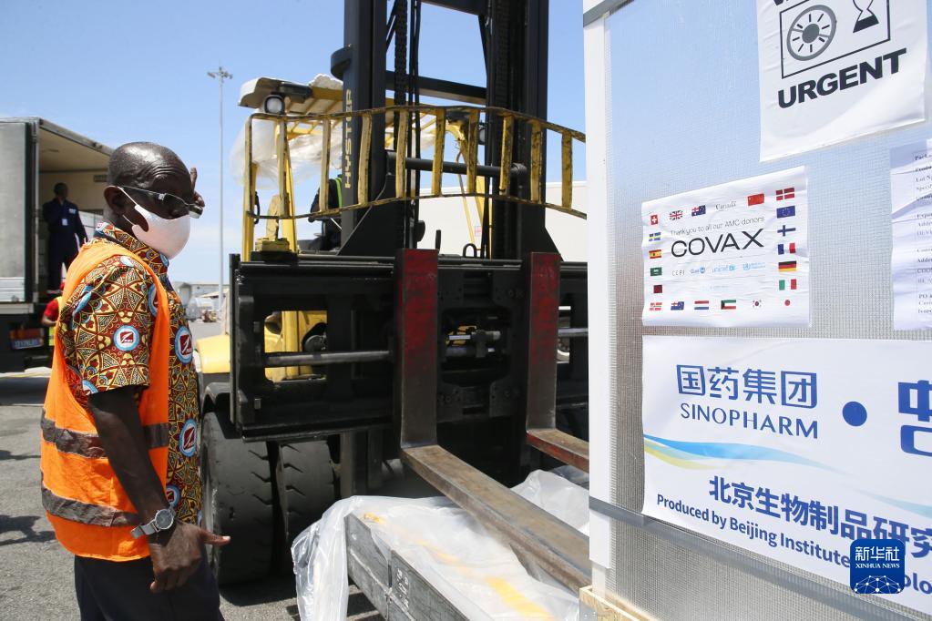 工作人員在科特迪瓦阿比讓國際機(jī)場(chǎng)搬運(yùn)中國國藥集團(tuán)通過“新冠疫苗實(shí)施計(jì)劃”供應(yīng)科特迪瓦的新冠疫苗(2021年9月18日攝)。新華社發(fā)(伊萬·宋攝)