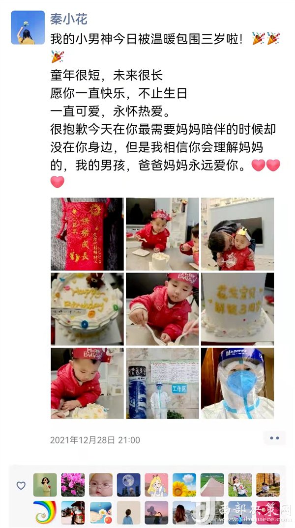 12月28日,是她兒子三歲生日,兒子生病時(shí),她在西安支援。如今,兒子生日,她又在隔離點(diǎn),她把對兒子的愧疚之心轉(zhuǎn)化為對隔離群眾的關(guān)愛之心。