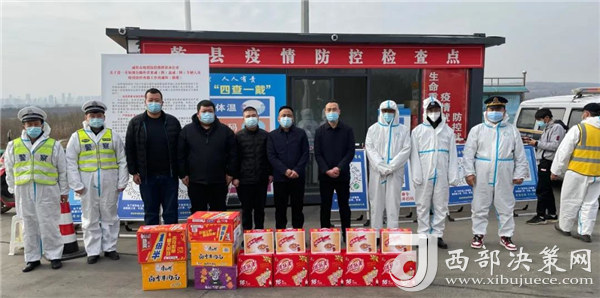 西部決策網(wǎng)訊 連日來(lái),西安市、咸陽(yáng)市疫情防控形勢(shì)嚴(yán)峻復(fù)雜,疫情防控工作進(jìn)入關(guān)鍵時(shí)期。12月30日,咸陽(yáng)東匯運(yùn)輸有限公司董事長(zhǎng)吳虛在縣交通運(yùn)輸局副局長(zhǎng)陳航的帶領(lǐng)下前往交通運(yùn)輸局包抓小區(qū)、道路管控執(zhí)勤點(diǎn),為一線人員送去了八寶粥、方便面、奶茶等慰問(wèn)品。并代表公司對(duì)交通防疫一線工作人員堅(jiān)守崗位、晝夜值守,筑牢疫情防控堅(jiān)固防線所作出的貢獻(xiàn)表達(dá)深深的謝意和敬意。
