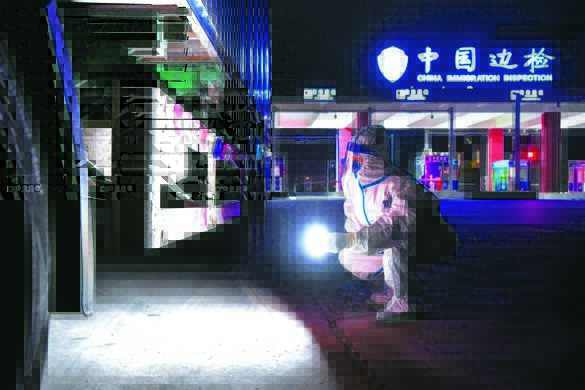 27日,記者在東興高速路口楠木山邊境檢查站看到,廣西防城港邊境管理支隊(duì)的執(zhí)勤民警身穿防護(hù)服,有條不紊地對車輛人員進(jìn)行檢查,引導(dǎo)運(yùn)送抗疫物資和人員的車輛有序進(jìn)入檢查站。