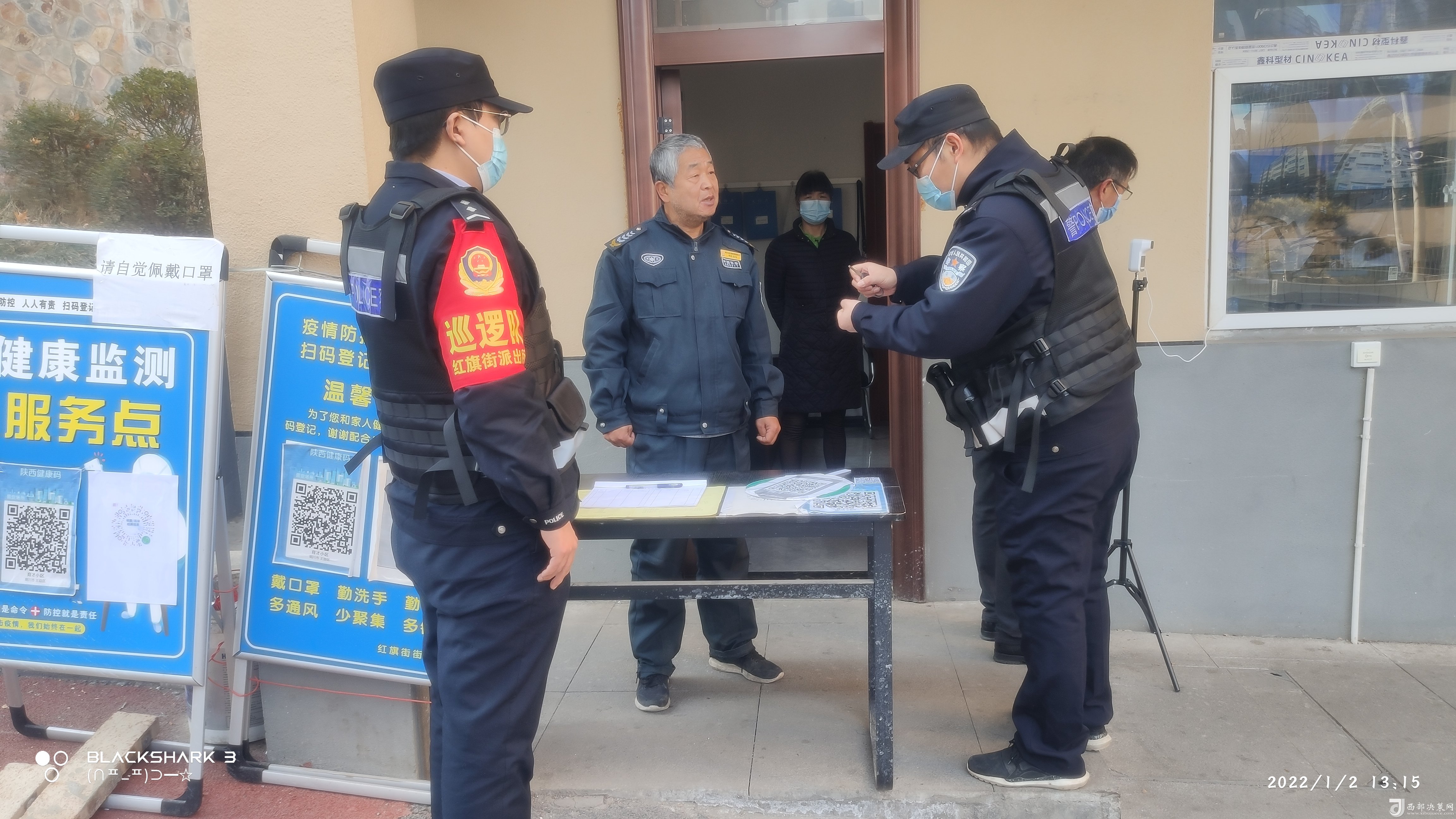 紅旗街派出所民警在小區(qū)疫情防控點(diǎn)進(jìn)行指導(dǎo)工作
