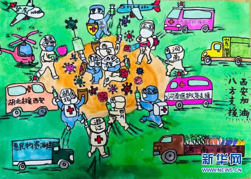 1月2日,西安市鄠邑區(qū)甘亭中心學(xué)校的孩子們用最自己的方式宣傳居家防疫知識,用手中的畫筆表達他們對抗疫英雄的贊美,為抗疫一線的英雄加油!為西安加油!(張思思 趙影超 王展榮)