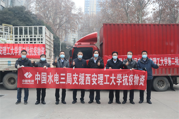 中國(guó)水電三局黨委書記、董事長(zhǎng)張育林得知學(xué)校急需防疫和生活物資后,要求特事特辦,急事急辦,1月4日中午,中國(guó)水電三局緊急采購的醫(yī)用外科口罩、84消毒液、過氧乙酸、水洗手消毒凝膠等第一批防疫抗疫物資即送達(dá)西安理工大學(xué)。