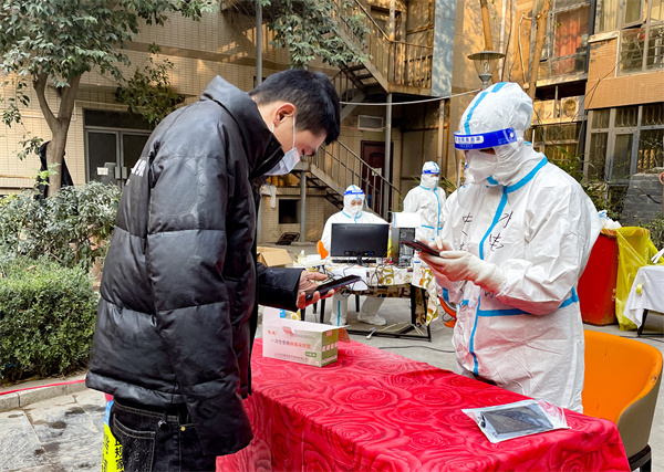 西安爆發(fā)本輪疫情,母親又一次主動站了出來,她說:“我是一名老共產(chǎn)黨員,現(xiàn)在國家需要我,我義不容辭,能為國家做貢獻(xiàn),我感覺到非常開心!”從2021年12月19日起,陳晶晶和妻子在母親的感召下參與了社區(qū)志愿工作,服務(wù)于每輪核酸檢測現(xiàn)場。陳晶晶說:“我們每天忙碌著,看著這個城市一天天好起來,心里踏實。”