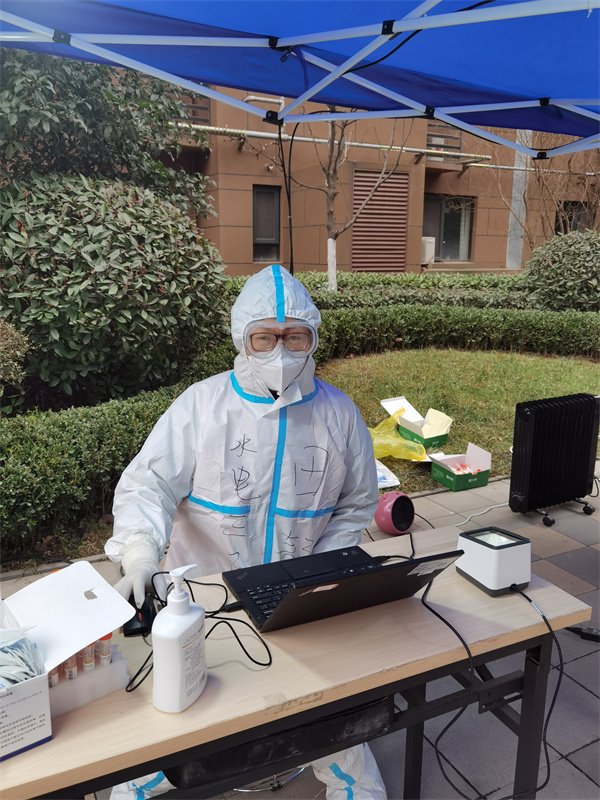 “街坊們,來來來!做核酸檢測,請先到這邊來登記。”身處經(jīng)開區(qū)的劉璇和向權(quán)在接到公司黨委號召后,積極申請參與白樺林社區(qū)的抗“疫”志愿服務(wù)。向權(quán)是一位湖南籍的小伙,和劉璇都是單位的青年職工,作為青年情侶抗“疫”志愿者的他們,主動為社區(qū)居民提供貼心服務(wù),認真做好維護現(xiàn)場秩序、協(xié)助登記信息、宣傳防疫知識、排查統(tǒng)計居民困難等工作,積極充當著守門員、宣傳員、信息監(jiān)督員和跑腿員,用青春力量構(gòu)建起一條條保障防線。“疫”路難行,你我同在,兩人在服務(wù)過程中耐心的勸導(dǎo)、詳細的詢問和解答都得到了小區(qū)居民的一致好評。“在一次排查獨居老人困難情況時,碰到一位曾從事水利工程工作的87歲清華畢業(yè)老人,這位老人與我們分享了很多工作事跡。”向權(quán)分享這一幕經(jīng)歷時他覺得無比親切與感動。