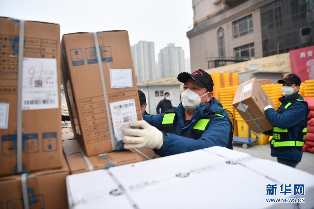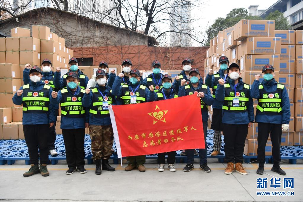 退役軍人志愿突擊隊隊員搬運防疫物資。新華社記者 張博文 攝