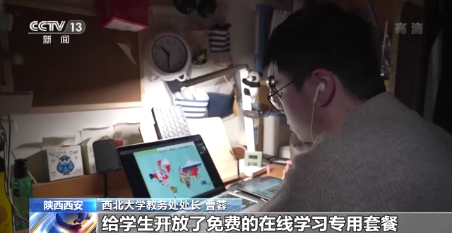 西北大學(xué)教務(wù)處處長 曹蓉:我們擔(dān)心網(wǎng)絡(luò)卡頓,西北大學(xué)的信息化處充分挖掘網(wǎng)絡(luò)資源,擴(kuò)容了帶寬,給學(xué)生開放了免費(fèi)的在線學(xué)習(xí)專用套餐。