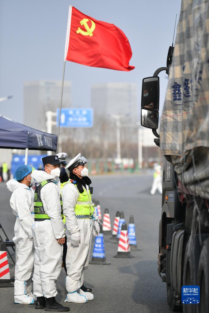 1月10日,西安市公安局浐灞生態(tài)區(qū)分局民警在西安市繞城高速新筑收費(fèi)站查驗(yàn)駕駛員健康碼。新華社記者 張博文 攝