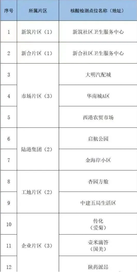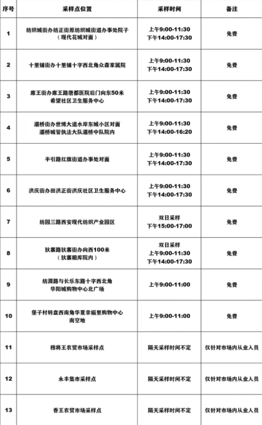 結(jié)合當前疫情防控總體形勢,為進一步做好復工復產(chǎn)和社會保供等方面保障工作,我市這些區(qū)域設(shè)置核酸檢測采樣點位,滿足市民需求。
