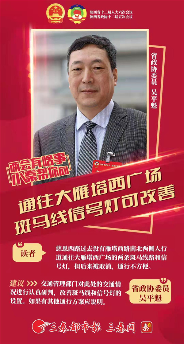 海報(bào)·建議|省政協(xié)委員吳平魁:通往大雁塔西廣場斑馬線信號燈可改善