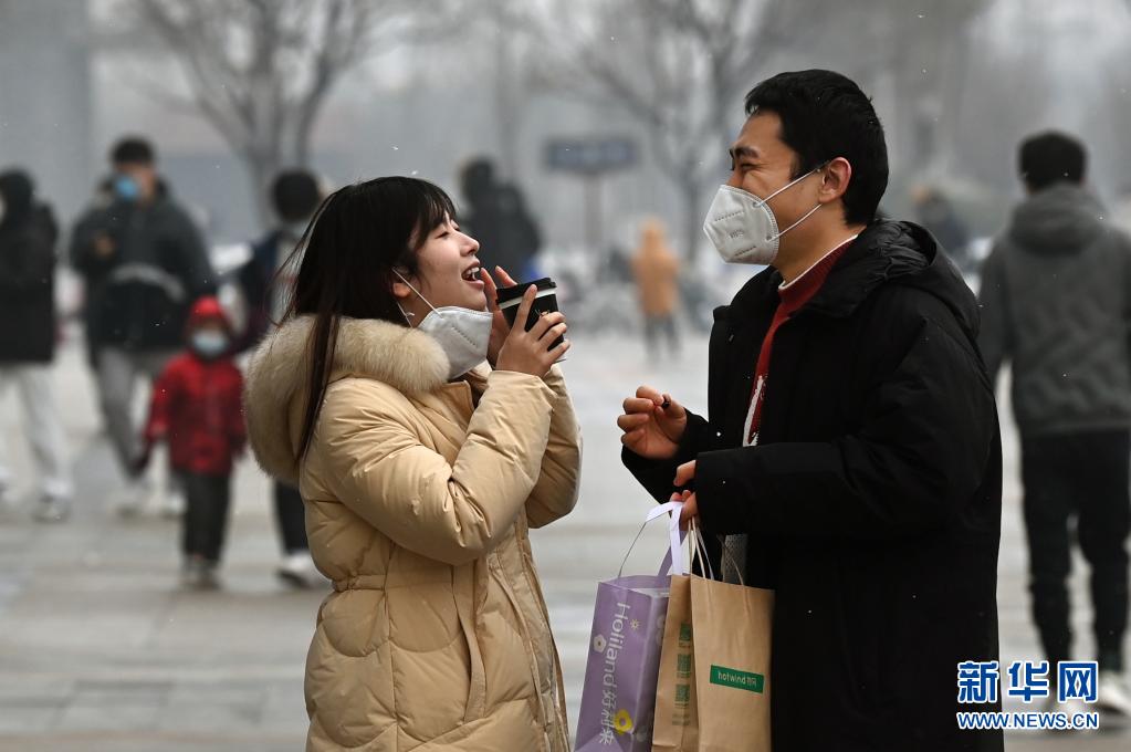 1月23日,市民在西安市未央?yún)^(qū)一廣場上暢談言歡。