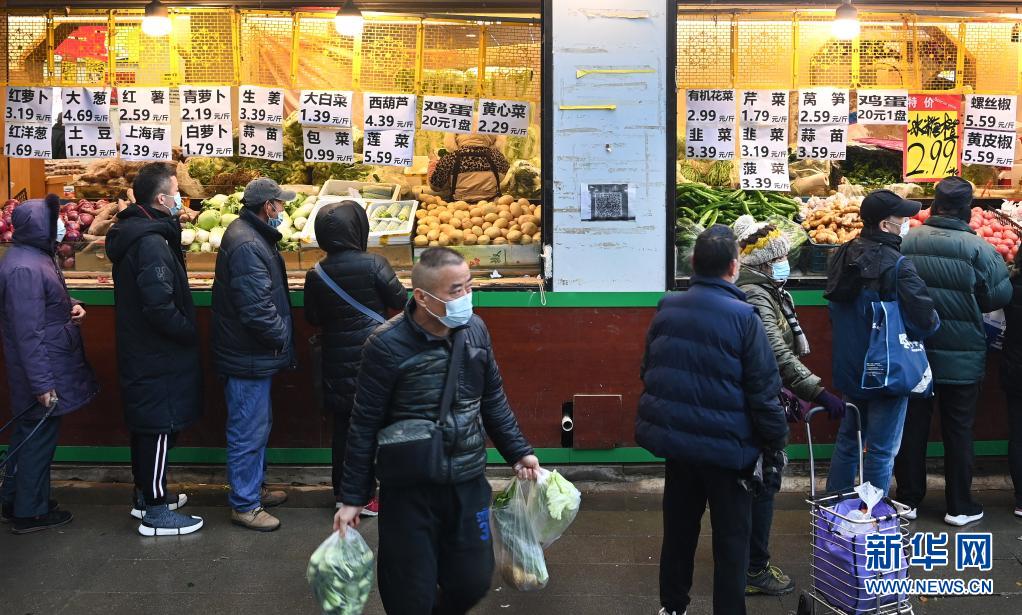 1月23日,在西安市碑林區(qū),市民排隊購物。