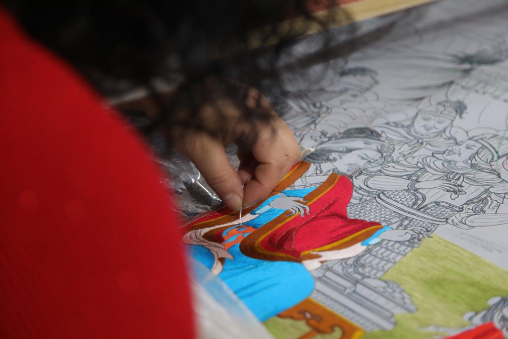 拉毛葉忠介紹,這些年,當?shù)卣?jīng)常組織民間藝人去考察學習湘繡、蘇繡、粵繡、蜀繡等中國四大繡的針法,讓藏繡技藝推陳出新,更加凸顯出藏繡自身蘊含的特色。