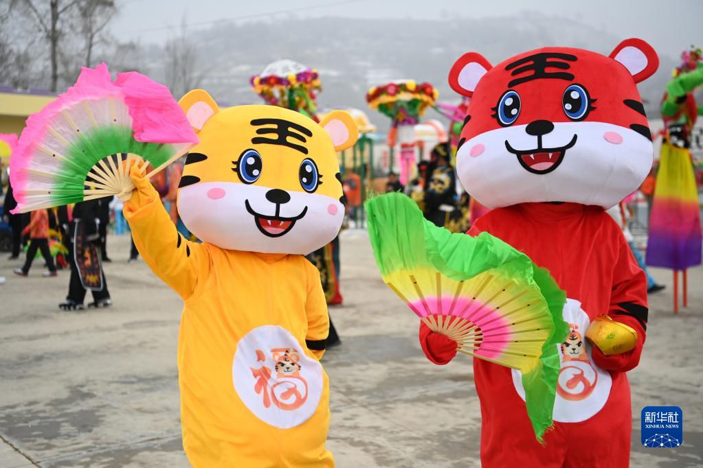 虎年春節(jié)將至,甘肅省臨夏回族自治州和政縣陳家集鎮(zhèn)陳家集村村民們扭起秧歌,迎接春節(jié)的到來。