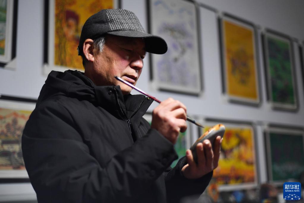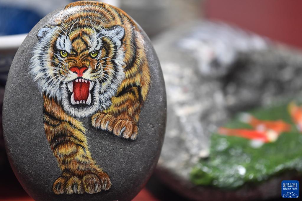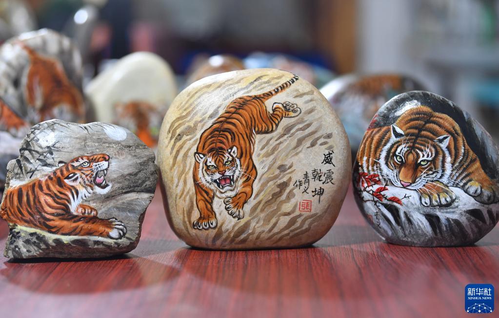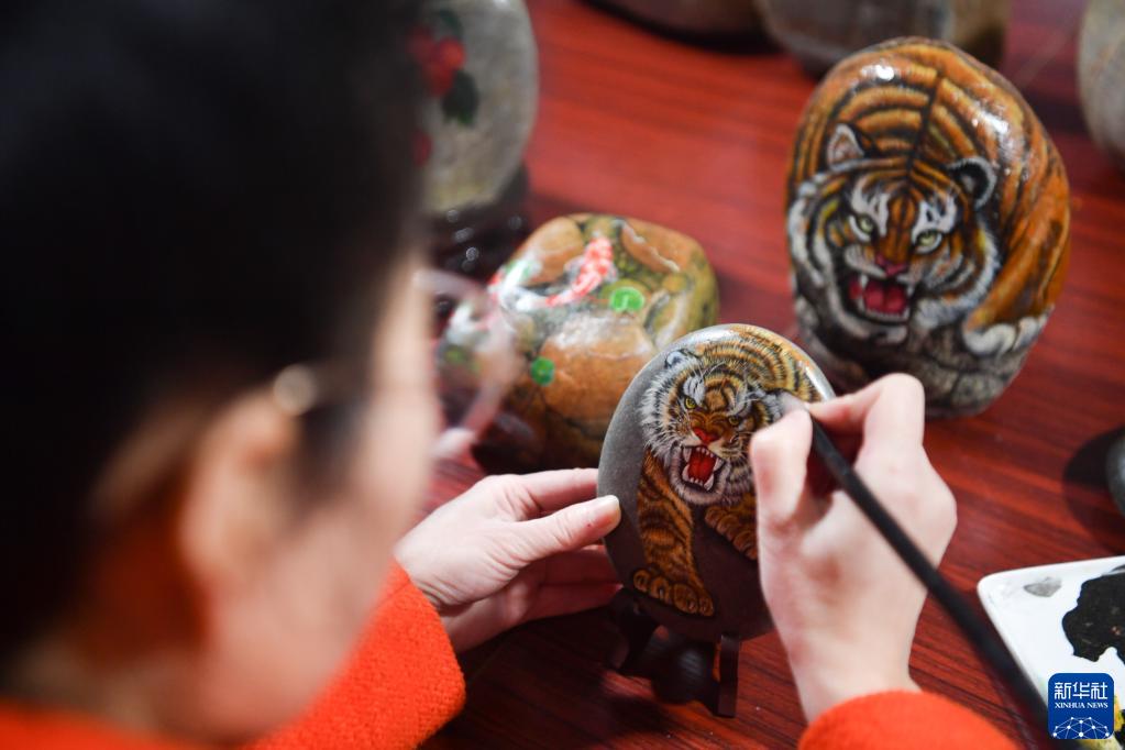 農(nóng)歷虎年將至,陜西省西安市鄠邑區(qū)的農(nóng)民畫家以石材為畫布,創(chuàng)作虎主題作品迎接新春佳節(jié)。