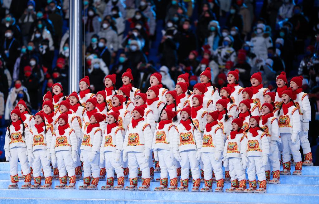 2月4日晚,第二十四屆冬季奧林匹克運動會開幕式在北京國家體育場舉行。這是“馬蘭花兒童合唱團”用希臘語在開幕式上歌唱。新華社記者曹燦攝