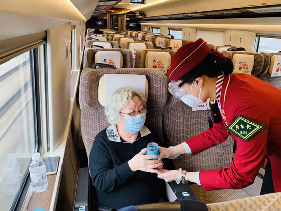 前一天晚上十一點(diǎn)半,剛剛退乘的付婷婷接到了為馳援上海臨時(shí)加開(kāi)醫(yī)護(hù)人員專列的值乘任務(wù),她沒(méi)有片刻遲疑,越是艱險(xiǎn)越是向前。凌晨5點(diǎn),天蒙蒙亮,她就早早起來(lái)收拾出乘可能用到的各種物品,第一時(shí)間趕到單位,為運(yùn)送援滬醫(yī)療隊(duì)做好了各項(xiàng)準(zhǔn)備。“無(wú)論是我一直值乘的G5還是現(xiàn)在臨時(shí)加開(kāi)的G267,都走京滬線,從2012年到2022年,從23歲到33歲,我一直往返京滬間,值乘4300余趟,里程達(dá)560萬(wàn)公里,相當(dāng)于繞地球140圈,這條線路上有什么特點(diǎn),可能發(fā)生什么情況,我再熟悉不過(guò),所以運(yùn)送醫(yī)療隊(duì)讓我去最合適!”付婷婷自豪地說(shuō)。