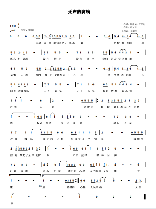 慶祝建黨百年獲獎(jiǎng)歌曲作品選集——《無(wú)聲的防線(xiàn)》詞曲。