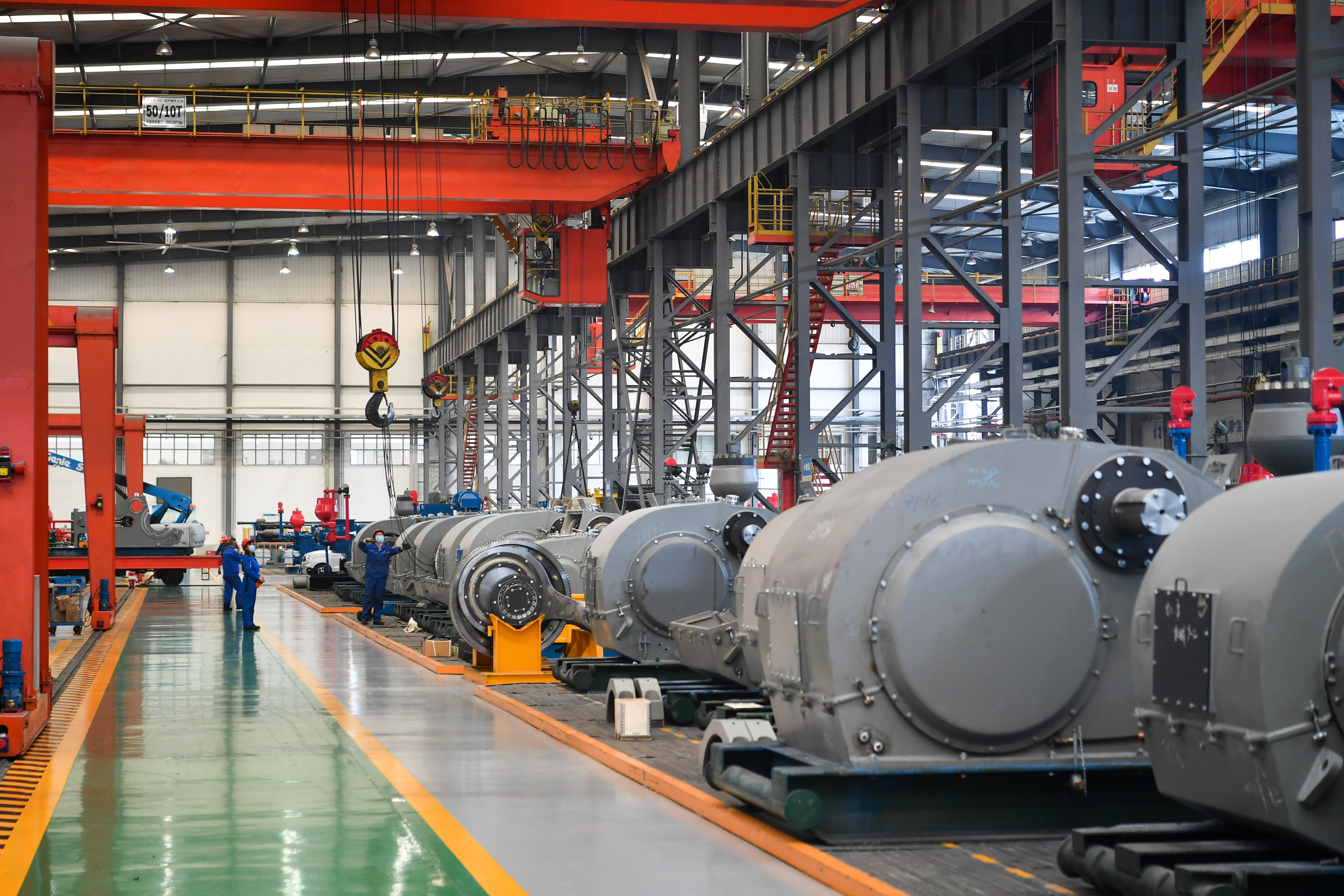 工人在寶雞石油機械有限責任公司運輸生產設備。新華社記者 張博文 攝