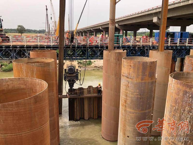 大橋上跨渭河,濕地保護(hù)、水土保持及文明施工要求高。華商報記者在現(xiàn)場看到,3號墩施工現(xiàn)場,深基坑需開挖25米深。“我們用的是五層鋼支撐圍檁,3號墩是開挖最深的。”京昆改擴建六標(biāo)段項目書記馬俊說,在河道內(nèi)的1、2號墩,樁基、承臺施工難度大、工序多,3號到7號橋墩承臺在地面以下7-17米,承臺施工深基坑開挖支護(hù)風(fēng)險高、難度大。