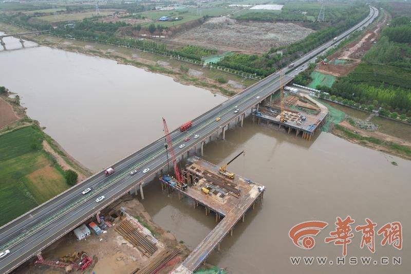 5月29日,在京昆改擴建項目六標(biāo)段港務(wù)區(qū)大橋施工現(xiàn)場,可以看到此處正準(zhǔn)備架設(shè)橋梁。一邊是繼續(xù)通行的京昆高速,一邊是繁忙的建設(shè)工地,“這里是路基改橋施工,橋?qū)牡胤降缆飞戏娇邕^去。”京昆改擴建項目六標(biāo)段常務(wù)副總工余偉介紹,目前高速公路在地方道路紡渭路下面,完成后兩條路將倒換位置。