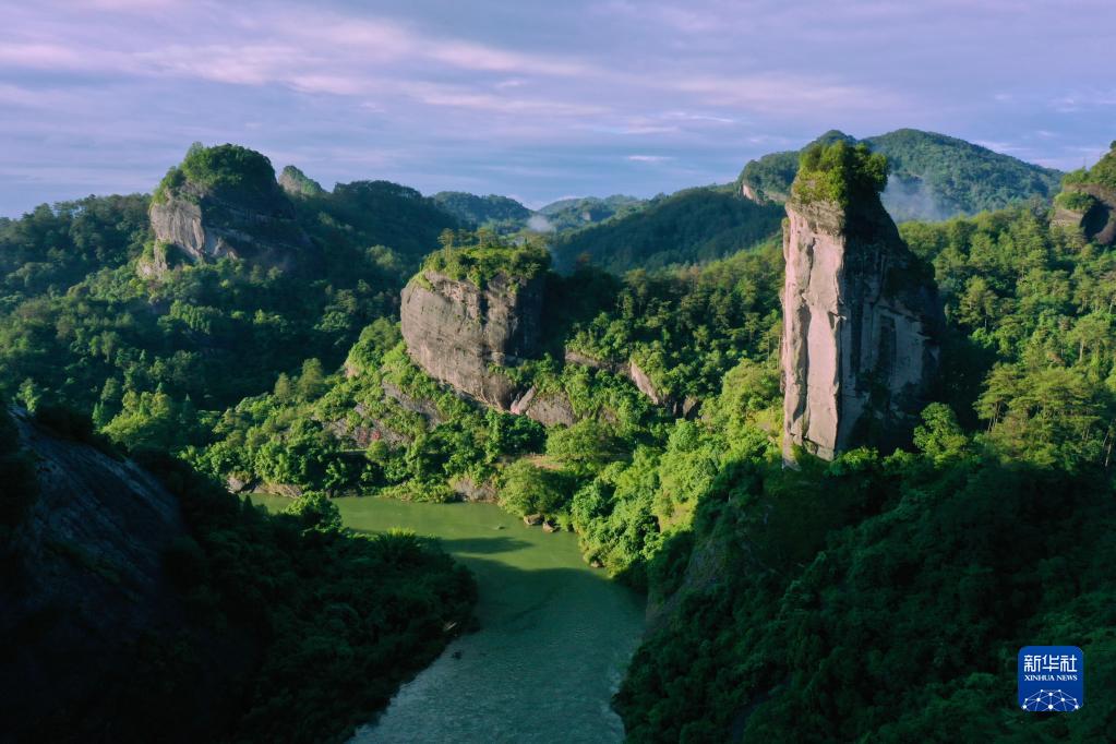 武夷山九曲溪兩岸的丹霞景觀(6月7日攝,無人機(jī)照片)。新華社記者 姜克紅 攝