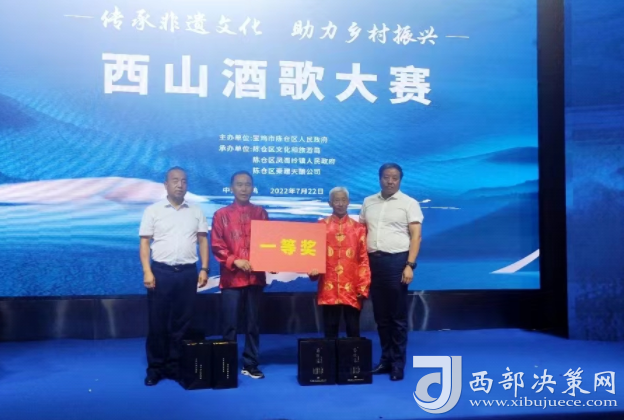 西部決策網(wǎng)訊(劉恒 通訊員 王榮)為傳承陜西省非物質(zhì)文化遺產(chǎn)“西山酒歌”文化,積極探索鄉(xiāng)村特色文化產(chǎn)業(yè)助推鄉(xiāng)村振興,進(jìn)一步豐富人民群眾文化生活,展示廣大人民群眾的良好精神風(fēng)貌。7月22日由寶雞市陳倉區(qū)人民政府主辦,區(qū)文旅局、鳳閣嶺鎮(zhèn)人民政府承辦的“西山酒歌”大賽在寶雞奧斯頓酒店圓滿落下帷幕。鳳閣嶺鎮(zhèn)6個(gè)參賽隊(duì)40余名選手參加了此次比賽。區(qū)政協(xié)主席茍曉明,區(qū)委常委、常務(wù)副區(qū)長(zhǎng)屈亞奇,區(qū)委常委、人武部政委王斌,區(qū)委常委、宣傳部長(zhǎng)徐宏剛,區(qū)人大常委會(huì)副主任尉曉平,寶雞市西山建委副主任齊文強(qiáng),市陸港新城紀(jì)工委書記李巖,區(qū)法院黨組書記、院長(zhǎng)田廣玉,區(qū)文化和旅游局局長(zhǎng)齊智雄,鳳閣嶺鎮(zhèn)黨委書記張小衛(wèi),鎮(zhèn)長(zhǎng)牟峰濤,區(qū)級(jí)各部門、各鎮(zhèn)街有關(guān)領(lǐng)導(dǎo)參加活動(dòng)。