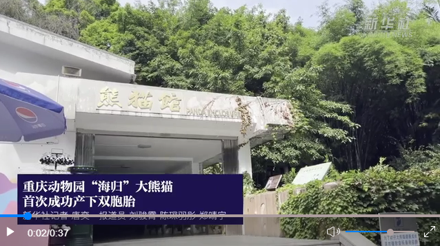 重慶動物園海歸大熊貓首次成功產(chǎn)下雙胞胎