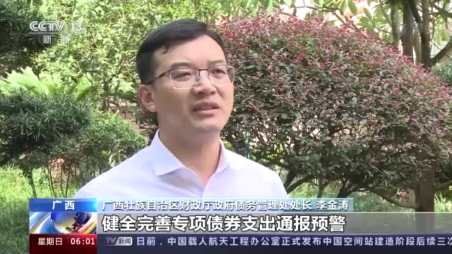 廣西壯族自治區(qū)財政廳政府債務(wù)管理處處長 李金濤:健全完善專項債券支出通報預警、調(diào)整收回、激勵約束等系列機制。在專項債券資金監(jiān)管方面,我們事前嚴格審核標準,提高項目質(zhì)量;事中精準安排調(diào)度,壓實支出責任;事后開展績效評價,完善獎懲機制,確保了債券資金及時、合規(guī)、高效使用。