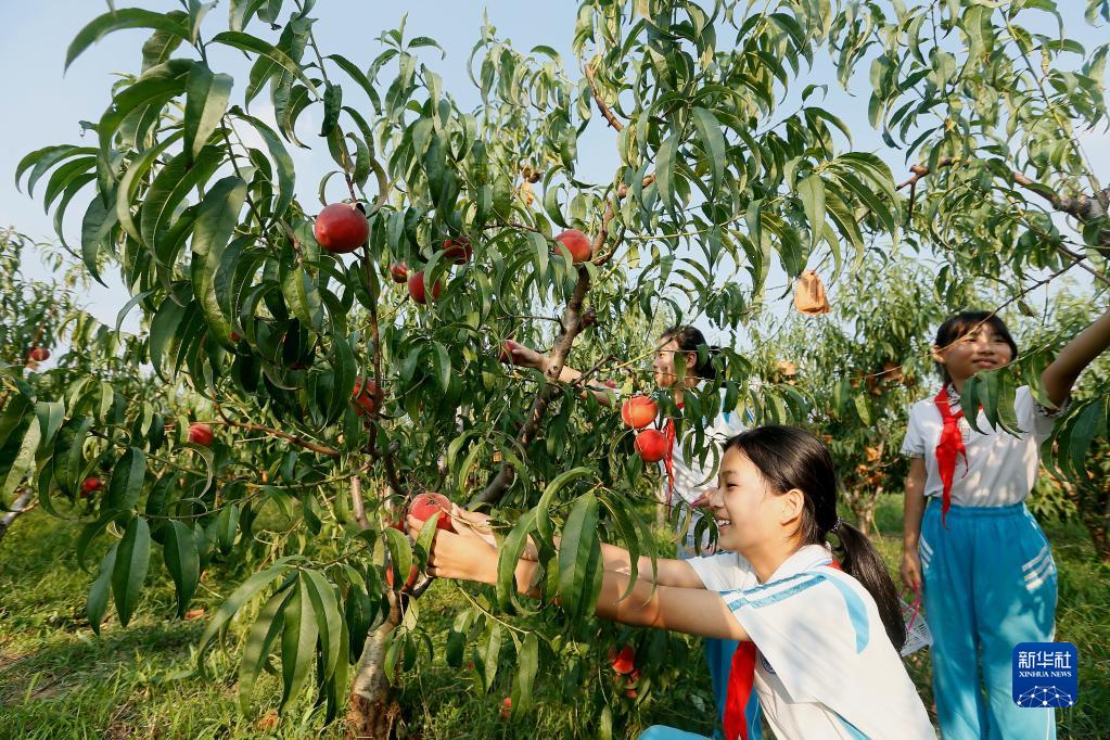 9月1日,山東青島藍(lán)谷高新區(qū)東皋埠小學(xué)的學(xué)生在即墨區(qū)靈山街道沃家泊子村潤豐農(nóng)場體驗田間課堂。新華社發(fā)(梁孝鵬 攝)