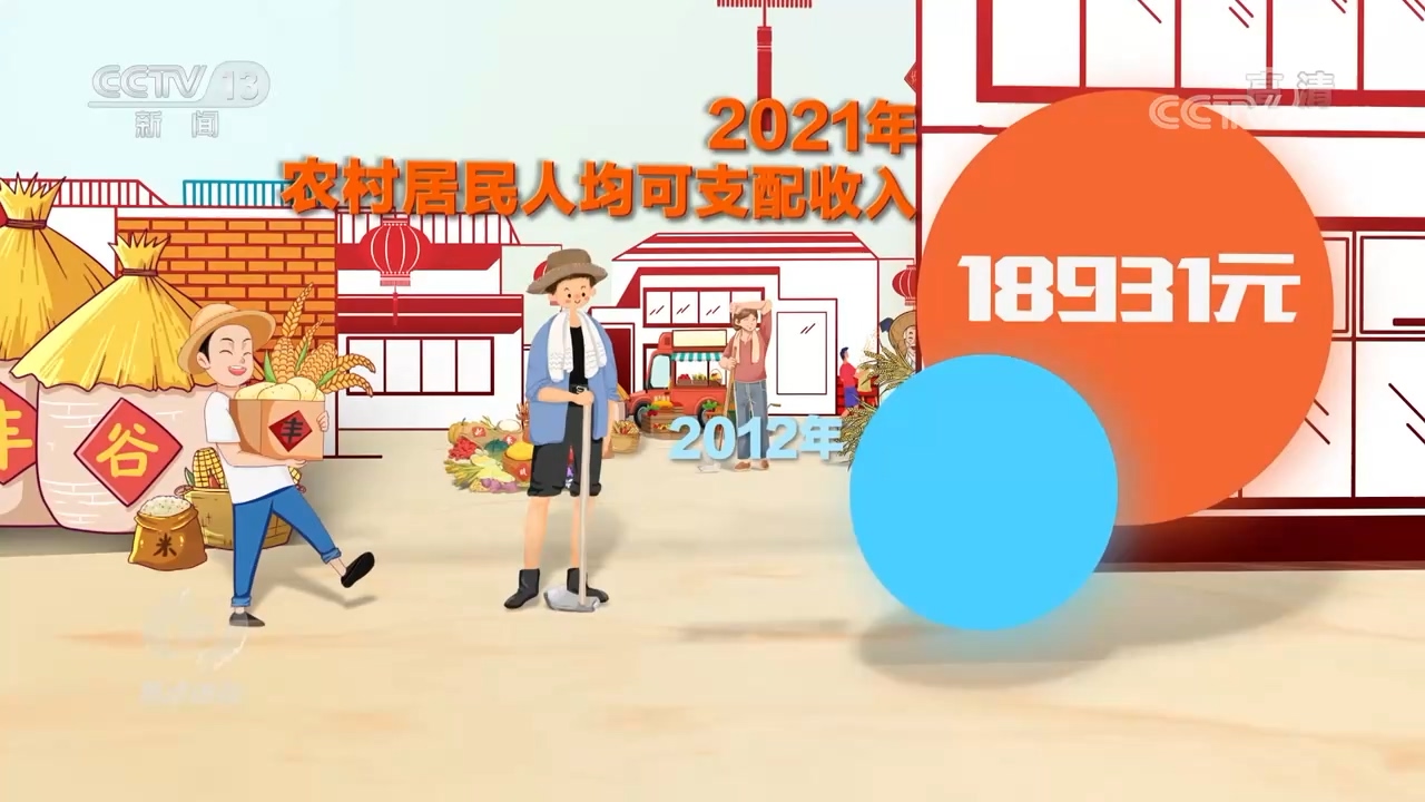 2021年,農(nóng)村居民人均可支配收入18931元,比2012年翻了一番多,這背后是大力發(fā)展的鄉(xiāng)村產(chǎn)業(yè),每個(gè)脫貧縣都打造了2-3個(gè)主導(dǎo)產(chǎn)業(yè),產(chǎn)業(yè)振興是鄉(xiāng)村振興的重中之重。從只賣(mài)農(nóng)產(chǎn)品本身到不斷增加附加值,我國(guó)農(nóng)產(chǎn)品加工轉(zhuǎn)化率達(dá)到了70.6%。越來(lái)越豐富的農(nóng)產(chǎn)品通過(guò)網(wǎng)絡(luò)賣(mài)到千家萬(wàn)戶(hù),農(nóng)產(chǎn)品網(wǎng)絡(luò)零售額超過(guò)4200億元。與此同時(shí),農(nóng)村一二三產(chǎn)業(yè)不斷融合,累計(jì)創(chuàng)建了140個(gè)優(yōu)勢(shì)特色產(chǎn)業(yè)集群、250個(gè)國(guó)家現(xiàn)代農(nóng)業(yè)產(chǎn)業(yè)園,其中,鄉(xiāng)村旅游產(chǎn)業(yè)每年?duì)I業(yè)收入也已經(jīng)超過(guò)7000億元。在這些產(chǎn)業(yè)的助力下,老鄉(xiāng)們的小康生活,還在繼續(xù)。