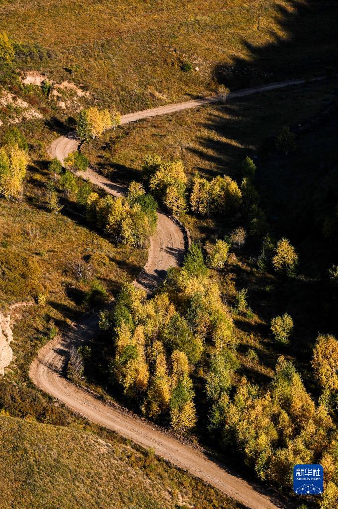 9月13日拍攝的呼和浩特市大青山秋日景色(無人機(jī)照片)。新華社記者 連振 攝
